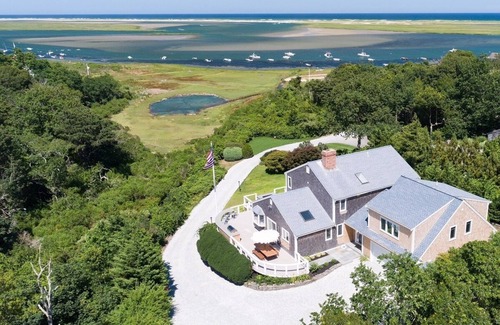 Enjoy panoramic views of Nauset Inlet and the Atlantic Ocean beyond from this beautifully remodeled Orleans home. The owners have added a heated salt water pool, hot tub, fire pit and outdoor kitchen area, all with splendid views. Walk less than 3 minutes to your beach and launch the owner provided kayaks to explore Nauset Inlet or Town Cove.