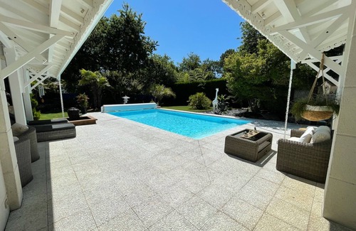 Harmonious duplex offering beautiful living spaces inside and out. Villa on two levels overlooking courtyard and private garden for the pleasure of a quiet holiday close to all amenities and outdoor activities. On foot, by bike or by car, the beaches of the Arcachon basin are yours. Located in the middle of the basin, you can easily go to Cap Ferret or Arcachon the dune of Pyla.