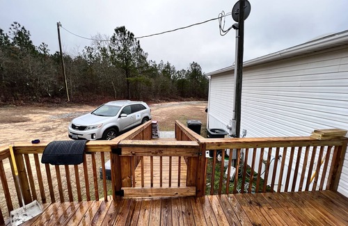 I am renting my manufactured home on a month-month lease. It is on mostly wooded 10 acres. It has 4 bedrooms and 3 bathrooms. 1 full bathroom is a guest master suite, 1/4 bath/powder room, and the master bath is 3/4 bath. All toilets have heated seats with hot/cold water bidets.