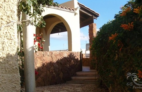Beautiful rustic house with garden and private pool, located on the outskirts of Arona, in the sunny south of Tenerife. It offers a spacious, landscaped outdoor area with a small pool. All around are sun loungers and garden furniture. The terrace is covered and equipped with a comfortable sofa. There are 2 double bedrooms with French style beds and 2 single beds in the living room. These include 3 bathrooms, one with a bath, and two more with a shower. Each of the bathrooms has a vanity and a toilet. The kitchen is well equipped with dishwasher, microwave, oven and 4-ring gas hob. In the house and on the terrace there is a dining table for 4 persons. Free internet via Wi-Fi. The living room with fireplace radiates a wonderful atmosphere. The house is a non-smoking house, guests are requested to do so outdoors.