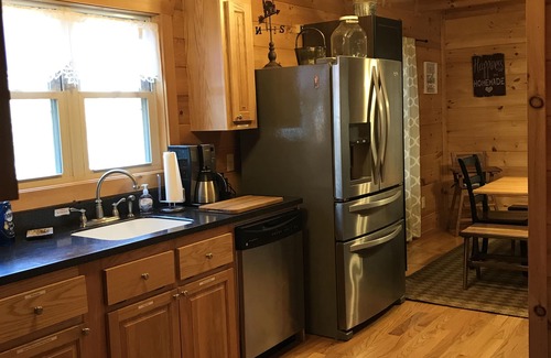The gas fireplace in the living room makes this cabin a comfy getaway! The cabin has central air and heat for your comfort.