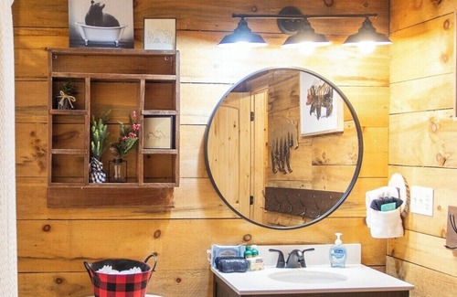 This beautiful property has enough room for the whole family! We have plenty of outdoor space for everything you could think of! We provide a fire pit and grill. The kitchen has plenty of room and brand new appliances. The dinning room seats 10+. The cabin sleeps 18 guests and has 3 full bathrooms. We have 2 king beds, 3 queens, 4 twins, 2 queen sofa beds and we even added 2 portable cribs for our tiniest guests. TVs are provided in all bedrooms and the living room. Upstairs, our game room features an air hockey table and a chalkboard wall!