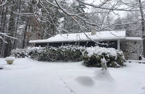 Featured in the Escape Section of the New York Times, this house is in a great location, six minutes by car to the town of Woodstock, yet secluded and surrounded in pine trees. This house has been called a true gem, updated with three lovely bedrooms and one bathroom. The property sits at the bottom of Ohayo Mountain on 2.6 wooded acres with partial mountain views. Close to skiing and lots of hiking. 🥾 There is a brand-new hot tub to die for! The renovated 1924 house has a brand-new kitchen with cathedral ceilings and several large skylights. The living room boasts a beautiful large quarry stone fireplace and cherry hardwood floors, with radiant floor heating in the kitchen. Adjacent to the open kitchen is a large glass-enclosed heated porch with a large dining room table and streaming sunlight—beamed ceilings. The house is beautifully decorated with an Eastern flair for a natural retreat feel. For music lovers, the living room has a piano. There are cozy queen-sized beds in two bedrooms and a full sized in the third bedroom. An original children's playhouse sits on the property for kids to have their own little house.