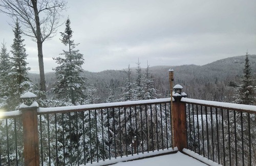 Mountain view - Quality 2012 construction - Cathedral ceiling, wood floors, fireplace, large windows, trendy white kitchen, garden level basement and abundant charm; everything is there. 10 minutes from the village of Sainte-Adèle and highway 15.