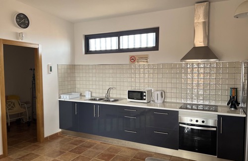 Country house, consists of two rooms with bathroom in each of the rooms, kitchen, living room, terrace, laundry room. Fully independent extended gardens where you can enjoy nature. In the surroundings you will find paths and routes where you can practice some sport such as walking, running, cycling. We have large and beautiful beaches close to home at 10km, white beach ideal for the enjoyment of the whole family. 30 km from the beaches of Corralejo with its great white sand beaches, where your eyes escape and your imagination flies and 100 km from the beaches of Jandia with its endless walk on sand and sea. You will also find supermarkets, shopping center, bars, restaurants. And endless leisure activities for the whole family. The pool is communal and is not in this house, it is about 150m away.