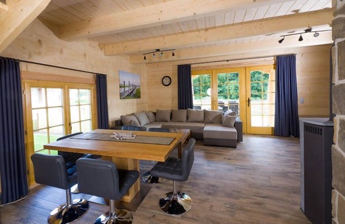 Pets are welcome in this beautiful, massive log house. Completed in July 2015 is at the heart of nature, offers modern amenities with kitchen / dining area, an open living room with TV to relax. A shower room and two separate bedrooms allow a comfortable, relaxing stay. Cool in summer, warm in winter, plus the intimate scent of wood will stay in your memory. Still to mention is the unique double bed as it can be seen in the pictures.