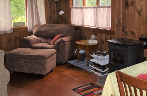 This property is a wonderful ranch home. There are two bedrooms with open concept living room/kitchen area. Cathedral ceilings with exposed beams. Radiant heated floors throughout for those chilly mornings and nights which make it rentable year-round. It also has a pellet stove to add to the peacefulness and comfort of your stay.