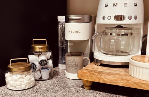 When you pull up you will be greeted by beautiful trees, a front porch with rocking chairs to enjoy your morning coffee or evening glass of wine. Plan on seeing our little deer friends during your visit! Both in the front yard or in the backyard on the other side of our bridge that’s over a little stream. Make awesome memories at this wonderfully unique family-friendly home.