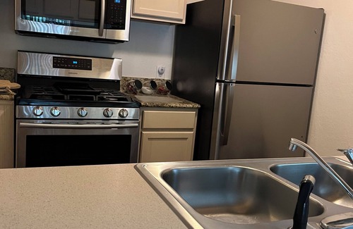 Located in Tallahassee, enjoy what this 2-bedroom condo has to offer. This serene and cool retreat features 1 king bed, 1 queen bed, TV’s in the bedrooms, and a cozy living room with a futon. With amenities like WiFi, AC, washer/ dryer, full kitchen, dishwasher, pots and pans, coffee maker/coffee, seasons for cooking and other small appliances. Quests can unwind and recharge in this enchanting space.